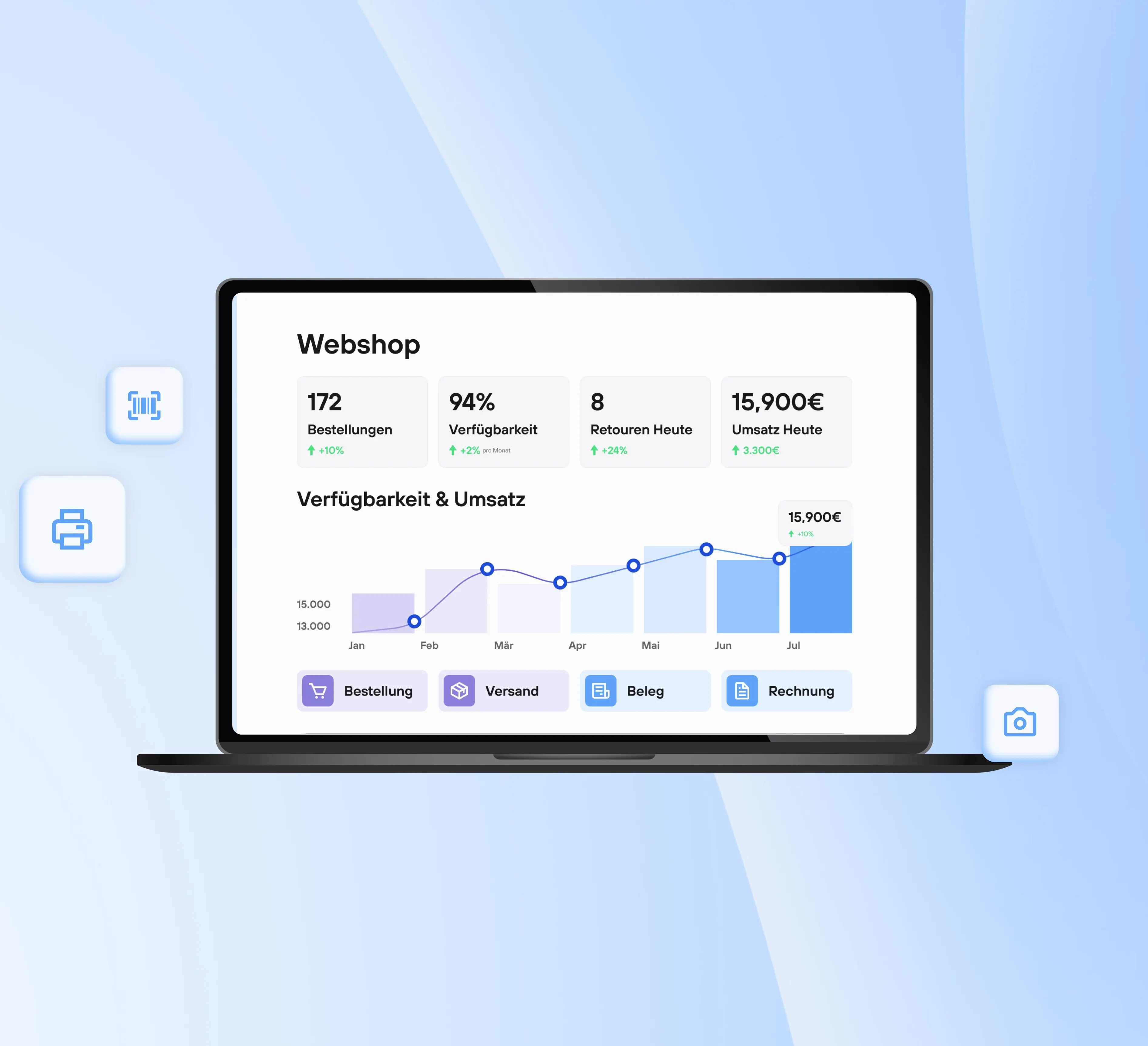 Beschleunigen Sie Ihren Warenfluss. Integrieren Sie RFID- und Barcode-Scanner direkt in Ihre App, um Inventuren, Wareneingänge und Kommissionierungen fehlerfrei und in Echtzeit zu steuern. Gestalten Sie den Prozess für bestmögliche Effizienz und Geschwindigkeit.